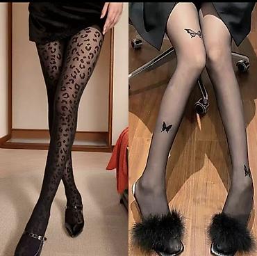 - Варианты дизайна: леопардовый принт; полупрозрачные с акцентными тату‑вставками «бабочка» на голени