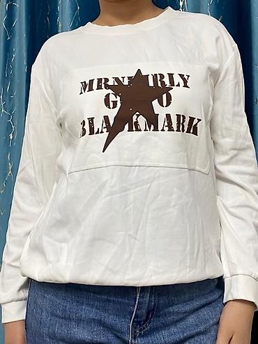 - Белый с крупным контрастным принтом со звездой и буквами на груди.