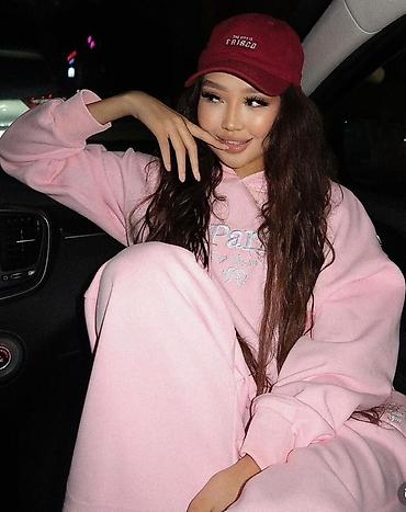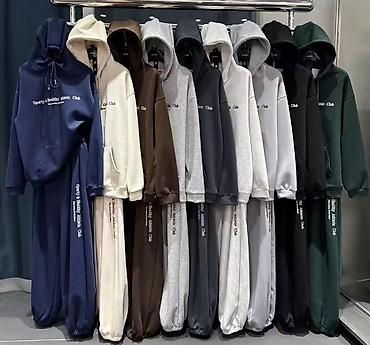 - Двухпредметный комплект из мягкого трикотажа с начёсом: oversize худи с капюшоном и кенгуру‑карманом, брюки на резинке с утягивающим шнурком.