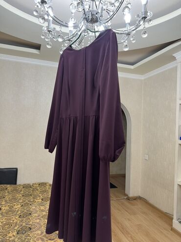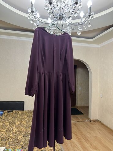 - Фасон: свободный А-силуэт с присборенной юбкой от линии талии, длинные рукава на резинке у манжета.