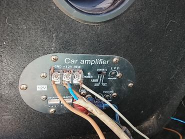 Сабвуферный комплект AMP. - сабвуфер в корпусе: динамик с логотипом AMP, установлен в закрытый/ФИ ящик, обтянутый акустическим карпетом. Фазоинверторный порт сбоку. - Усилитель класса AB/D (моно/...