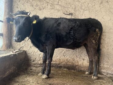 Бык чёрного окраса, рогатый, на привязи, содержится в отдельном стойле. Крупный, широкая спина и грудь, крепкий костяк, ровные конечности. Кожа и шерсть тёмные, плотные. Уши с бирками. Спокойный ха...