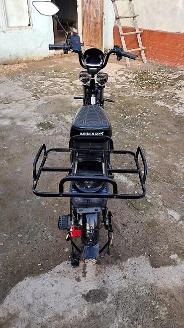 Практичное решение для курьерской доставки, поездок по даче и городу: тихий, экономичный, с мощным светом и большим багажным пространством. Модель MINAKO обозначена на сиденье.