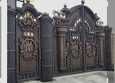 - Конструкции: двустворчатые распашные створки, калитки в едином стиле, декоративные столбы и накладки; возможна интеграция автоматики и электрозамков.
