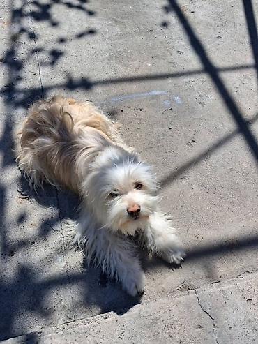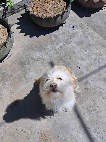 Маленькая декоративная собака, смешанная порода (по типу терьера/шицу).