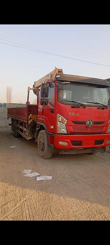 Автокран-манипулятор на базе бортового грузовика Dongfeng (красный), стрела XCMG SQS157-4.