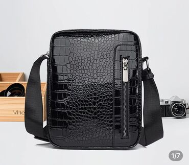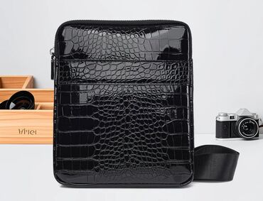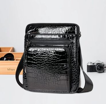 Вариант 1 — черная сумка с глянцевой фактурой под крокодила: