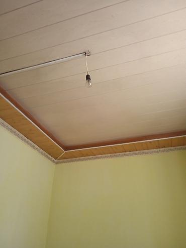 - Материал: панели под дерево и гладкие светлые панели из ПВХ/МДФ, а также фигуры и карнизы из гипсокартона/пенополистирола для многоуровневого потолка.