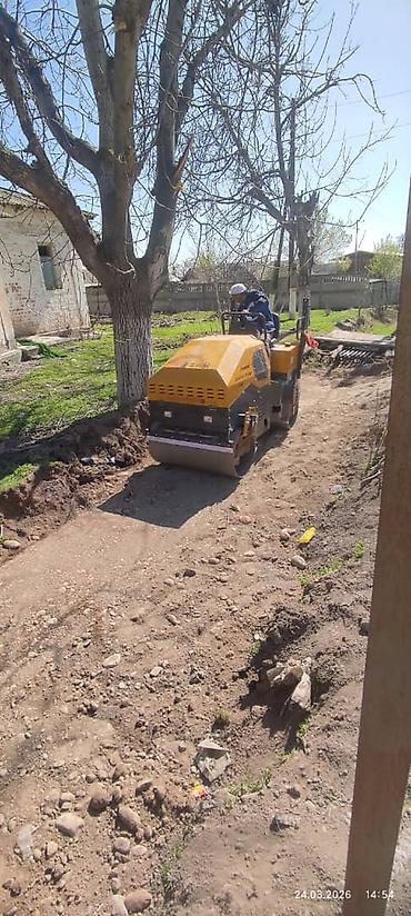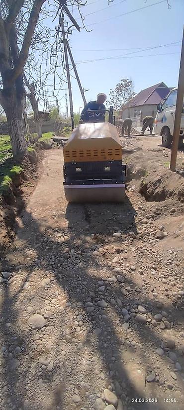 - Работа по подготовке дорожного корыта: разравнивание, проливка, многократные проходы катком.