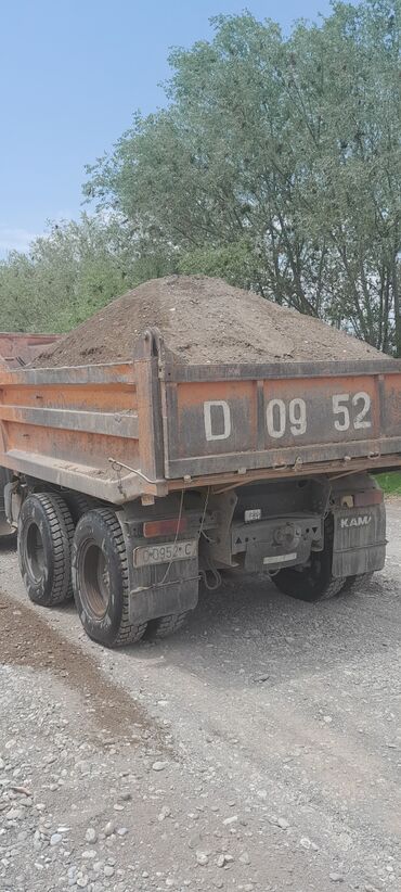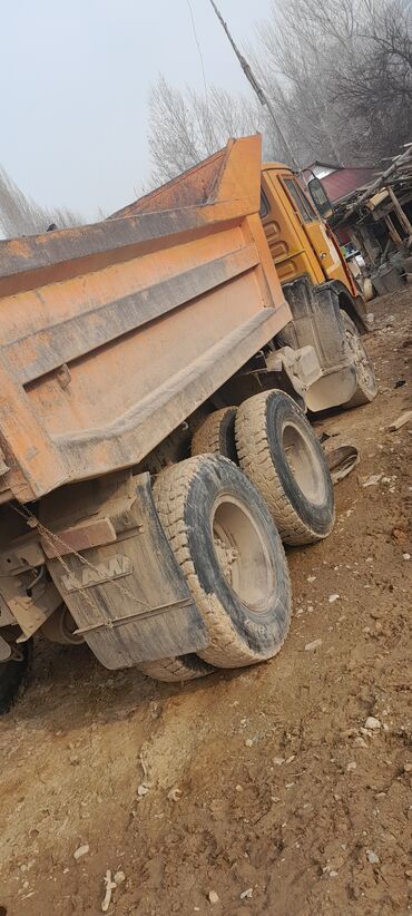 Самосвал КАМАЗ оранжевого цвета, предназначенный для перевозки сыпучих грузов. Автомобиль оснащен прочным кузовом, подходящим для строительных материалов, таких как песок, гравий и земля. Модель имеет многоосный шасси, обеспечивающее высокую грузоподъемность и проходимость. Идеально подходит для использования на строительных площадках, в сельском хозяйстве или для других задач, требующих транспортировки больших объемов материалов.
