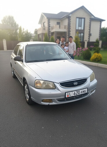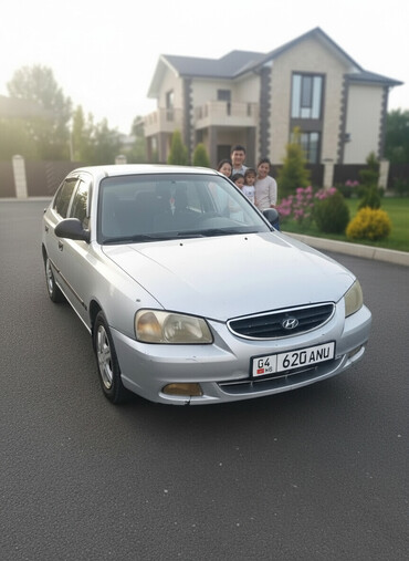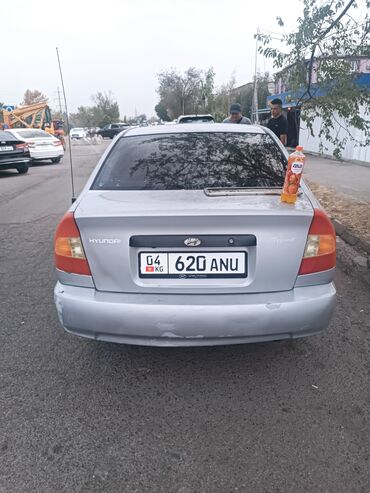Hyundai Accent, седан, серебристый цвет. Кыргызские номера: 04 KG 620 ANU.