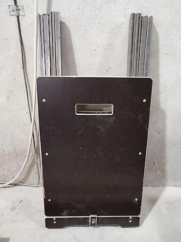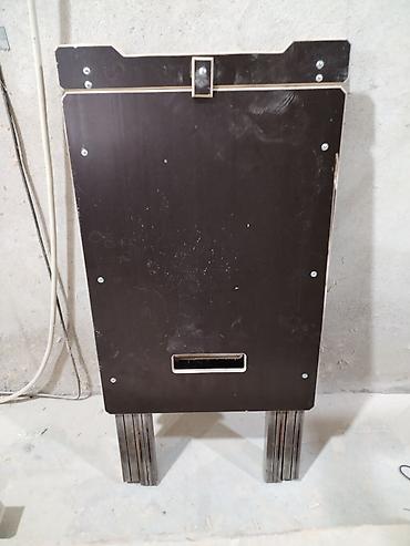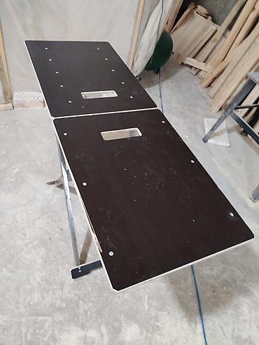- Двухсекционная столешница из ламинированной фанеры с технологическими отверстиями и прорезями-ручками для переноса.