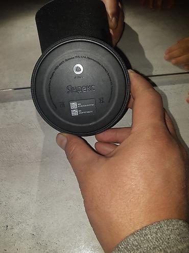 На основании маркировки снизу: модель Яндекс, серийный номер и QR‑коды для быстрой настройки. Подходит для использования в качестве домашнего помощника, плеера музыки и хаба умного дома.