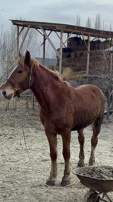 Продаётся рабочая лошадь рыжей масти (соловая/рыжая с проточиной на морде). Крупного, мощного телосложения: широкая грудь, крепкая шея, сильные ноги и копыта. Подходит для упряжи, сельхозработ и хозяйственных нужд, уверенно стоит на привязи, спокойный характер.
