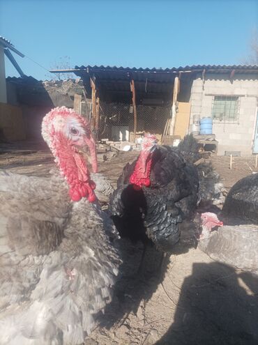 Индюки породного типа (серые и чёрные). Крупные самцы с развитым гребнем и бородой, широкая грудь, плотное оперение. На фото видно стадо на выгуле.