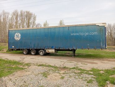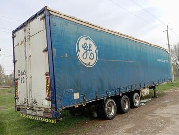 Продается полуприцеп, предназначенный для перевозки различных грузов. Оснащен тентованным кузовом синего цвета, что обеспечивает защиту перевозимых товаров от внешних воздействий. На боковой стороне кузова расположен логотип GE. Полуприцеп оборудован тремя осями с парными колесами на каждой, что способствует равномерному распределению нагрузки и устойчивости на дороге. Металлическая рама и дополнительные элементы конструкции обеспечивают прочность и долговечность. Подвеска включает воздушные ресиверы, что может указывать на пневматическую систему. Подходит для использования в логистике и грузоперевозках.