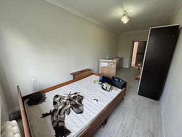 - В комнате установлены: односпальная/полуторная кровать с матрасом, шкаф-пенал, комод/тумбы, длинный деревянный стол/лавка, настольная тумба.