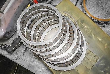 - Восстановление/замена изношенных узлов: фрикционы и стальные диски, пакеты сцеплений, подшипники, сателлиты и шестерни планетарных рядов, насос, втулки, сальники и уплотнения.