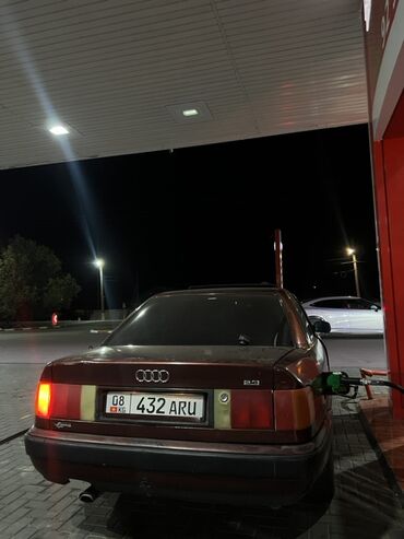 Audi 100 C4 седан, бензиновый. Кузов бордовый, 4 двери, обьем двигателя “2.3”. Колёсные диски легкосплавные, шины зимние новая. Передняя оптика прямоугольная. Интерьер с классической приборной панелью Audi 90‑х, просторный салон и большой багажник. Заправочный лючок справа, автомобиль на киргизских номерах.