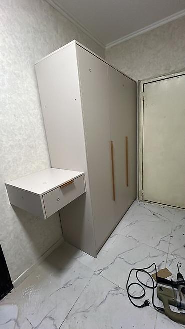Трёхдверный шкаф-купе/распашной светлого оттенка с центральным зеркалом. Особенности и наполнение: - 3 распашные двери; на средней — большое вертикальное зеркало для удобной примерки. - Две выдвиж...