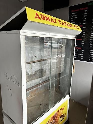 - Верхняя панель с козырьком и рекламной надписью «Дәмді тауық еті».