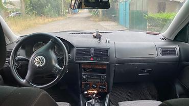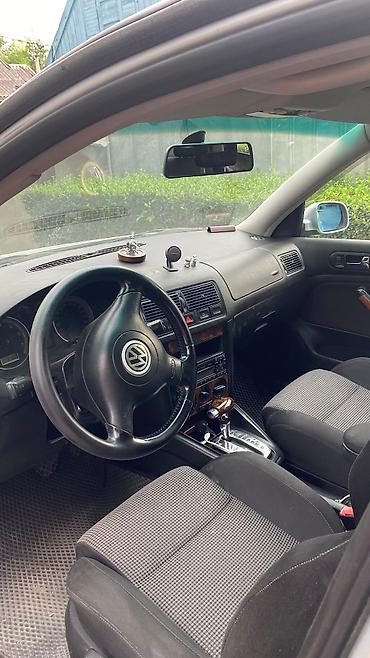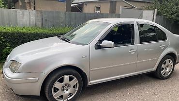 Volkswagen Bora, темно-синий седан (4 двери). Основные особенности: - Кузов: классический седан, темно-синий цвет, тонировка задних стекол. - Диски: легкосплавные, на автомобиле установлены дисков...