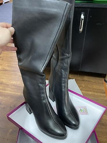 Женские сапоги-ботфорты Mainila, черные - Материал верха: гладкая