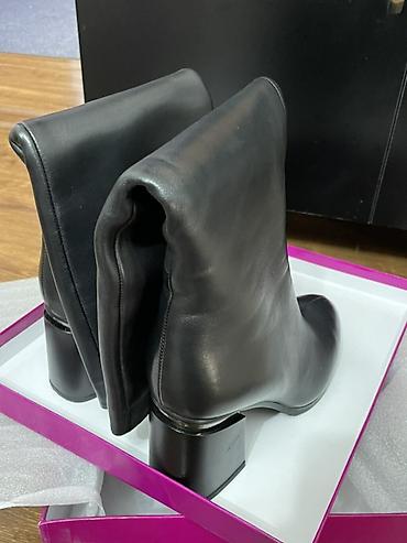 - Дизайн голенища: трансформер. Широкое голенище можно носить развернутым как ботфорты выше колена или сложить/отвернуть вниз, получая укороченный силуэт сапог.