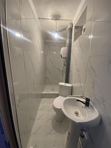 Кварплата 20000 сом + 5000 залог Коммунальные услуги отдельно. ( WhatsApp) - Жилая зона с окном, светлыми стенами и потолочным декором, на полу — ламинат. - Санузел совмещённый: унитаз, ванна, умы...