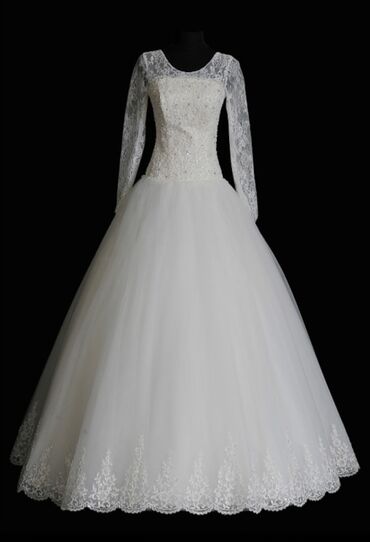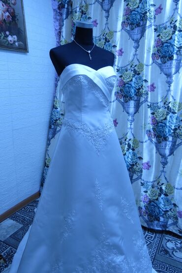 Продаю платье которое покупала на свое Кыз-Узатуу Длинная легкий шлейф мой рост 167 на любой рост идеально подойдет Производство:Турция Размер: 40р Турецкий размер на M-L подойдет Покупала за 2...