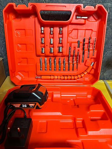 - набор оснастки в кейсе: биты различной длины, торцевые головки, свёрла по металлу/дереву, магнитный удлинитель, гибкий удлинитель;