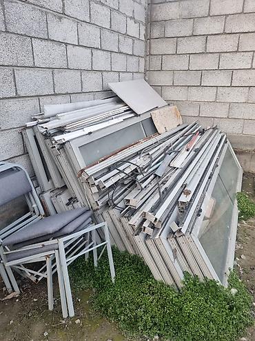 В комплекте разнообразные профили и фурнитура для сборки и ремонта алюминиевых дверей/окон; на фото показаны реальные элементы и крупные остеклённые секции.