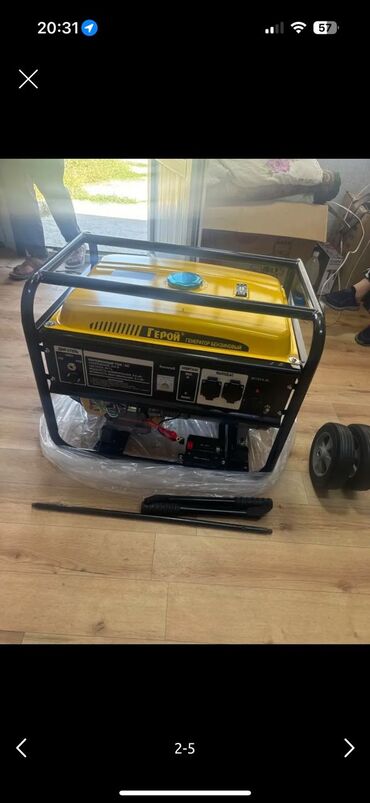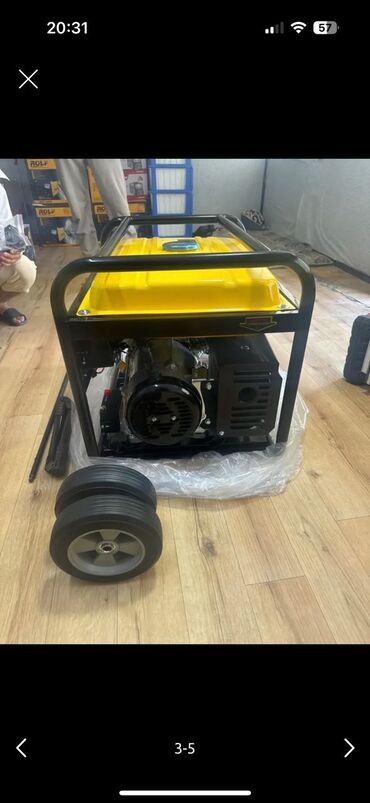 Подходит для питания дома, дачи, инструмента и оборудования при отключениях электричества. Комплект на фото: генератор, пара колёс, ручка/ось для тележки, инструмент.