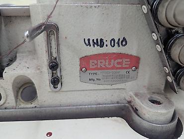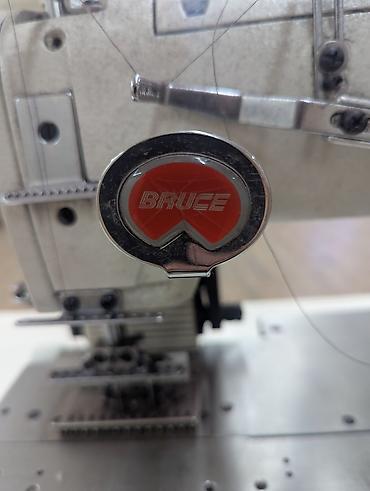 Промышленная швейная машина BRUCE (комплект на столе) - Марка/серия: BRUCE (логотип на корпусе). - Тип: промышленная многониточная машина цепного стежка/петельная (узел с несколькими нитенаправите...