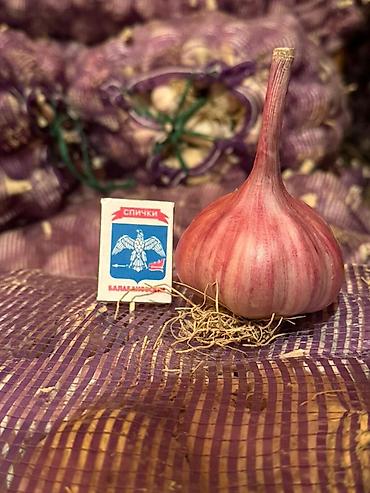Чеснок фиолетовый, зимний, крупный. - Луковицы округлые, плотные, с выраженной фиолетовой окраской чешуи. - Крупные головки с ровными зубчиками; удобен для кулинарии и заготовок. - Яркий аромат и ...