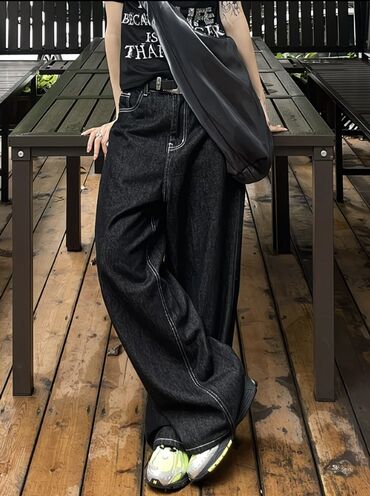 - Экстрамешный/baggy крой с очень широкими прямыми брючинaми