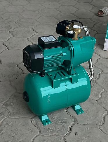 - Оснащение: манометр, реле давления, гибкая подводка, гидроаккумулятор (бак) с опорными лапами, латунная обвязка, термозащита двигателя.