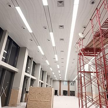 - облицовка потолков и стен крупных общественных пространств, торговых залов, холлов;