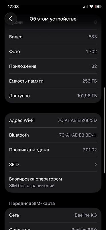 - Память: 256 ГБ (доступно ~101,96 ГБ на момент скриншота)