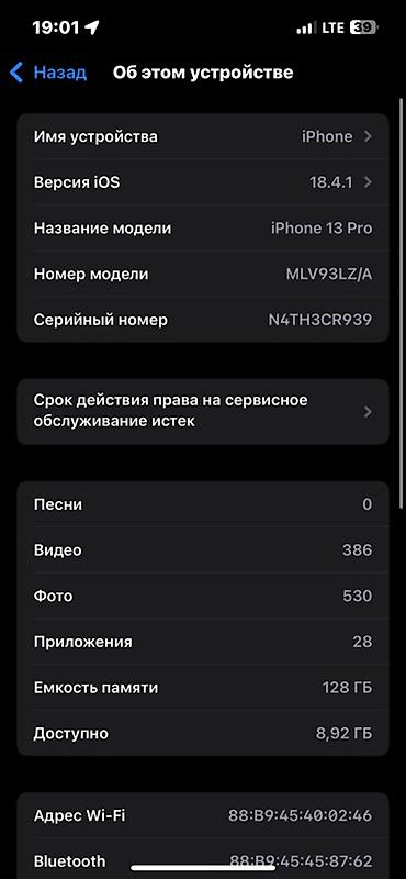 - Модель: iPhone 13 Pro (номер модели MLV93LZ/A)