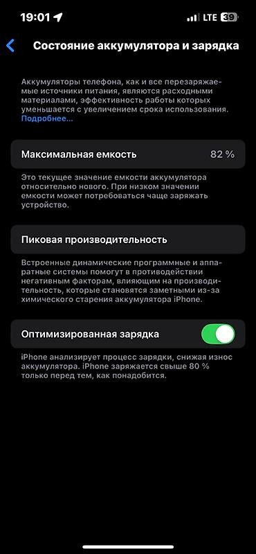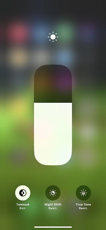 - Экран: OLED 6.1", поддержка True Tone, Night Shift (на скриншоте: Night Shift выкл., True Tone выкл., тёмная тема вкл.)