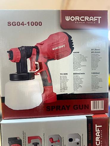 В комплекте: краскопульт WORCRAFT SG04-1000, бачок 1 л, сменные сопла 1.8/2.6 мм (по данным упаковки).