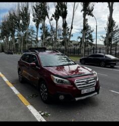 Автомобиль с киргизскими номерами на фото. Колесная база, клиренс и комплектация характерны для поколения Outback 5 (около 2015–2017 г.в.) с богатым набором опций для повседневных поездок и путешествий.