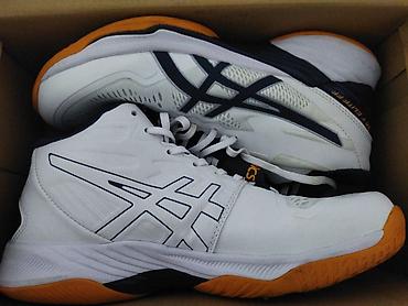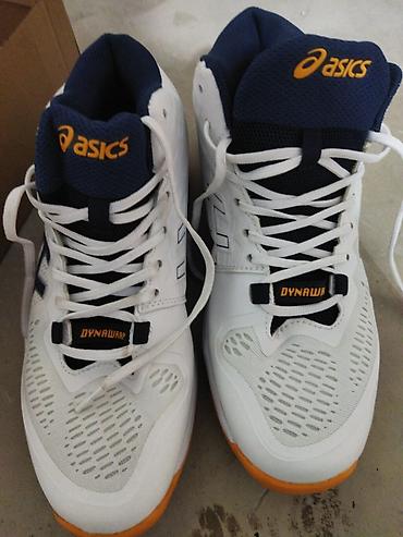 Кроссовки Asics для зала (волейбол/гандбол/сквош). - Высокий профиль с поддержкой голеностопа. - Верх: синтетика и сетчатые вставки для вентиляции. - Фирменная амортизация Asics (видимая в подош...