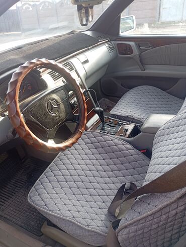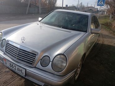 Отличается классическим дизайном E‑Class конца 90‑х, удобным салоном и хорошей шумоизоляцией. Подойдёт для повседневной езды и дальних поездок. Номера KG на фото.
