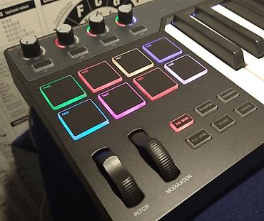 - 8 чувствительных к силе нажатия RGB-пэдов для драм-партов и запуска сэмплов