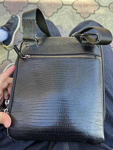 Мужская сумка через плечо CANPEL - Материал: черная фактурная экокожа