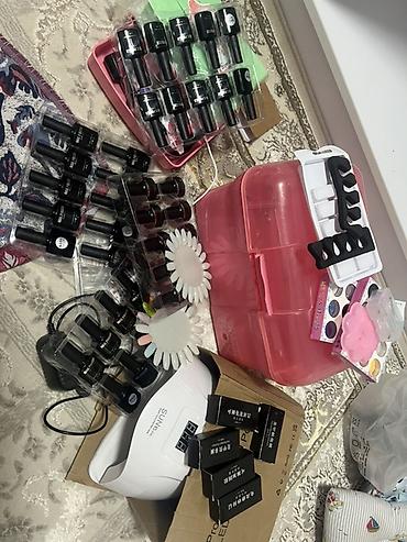 - Большая коллекция гель-лаков в бутылочках (разные оттенки: нюдовые, яркие, темные), базы и топы.
