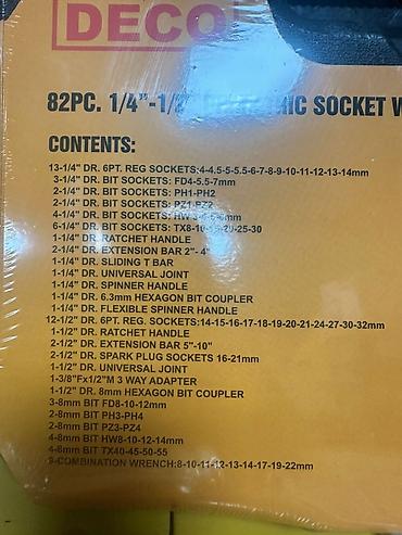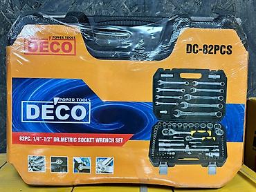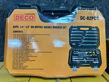 Набор ручного инструмента DECO DC-82PCS — 82 предмета, метрическая серия 1/4"–1/2" (головки, ключи, трещотки и биты) в пластиковом кейсе.