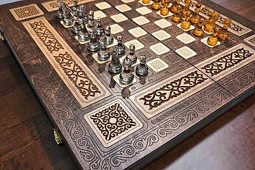 - Шахматы: полный комплект фигур двух цветов — прозрачный янтарный и прозрачный серый. Фигуры из эпоксидной смолы.